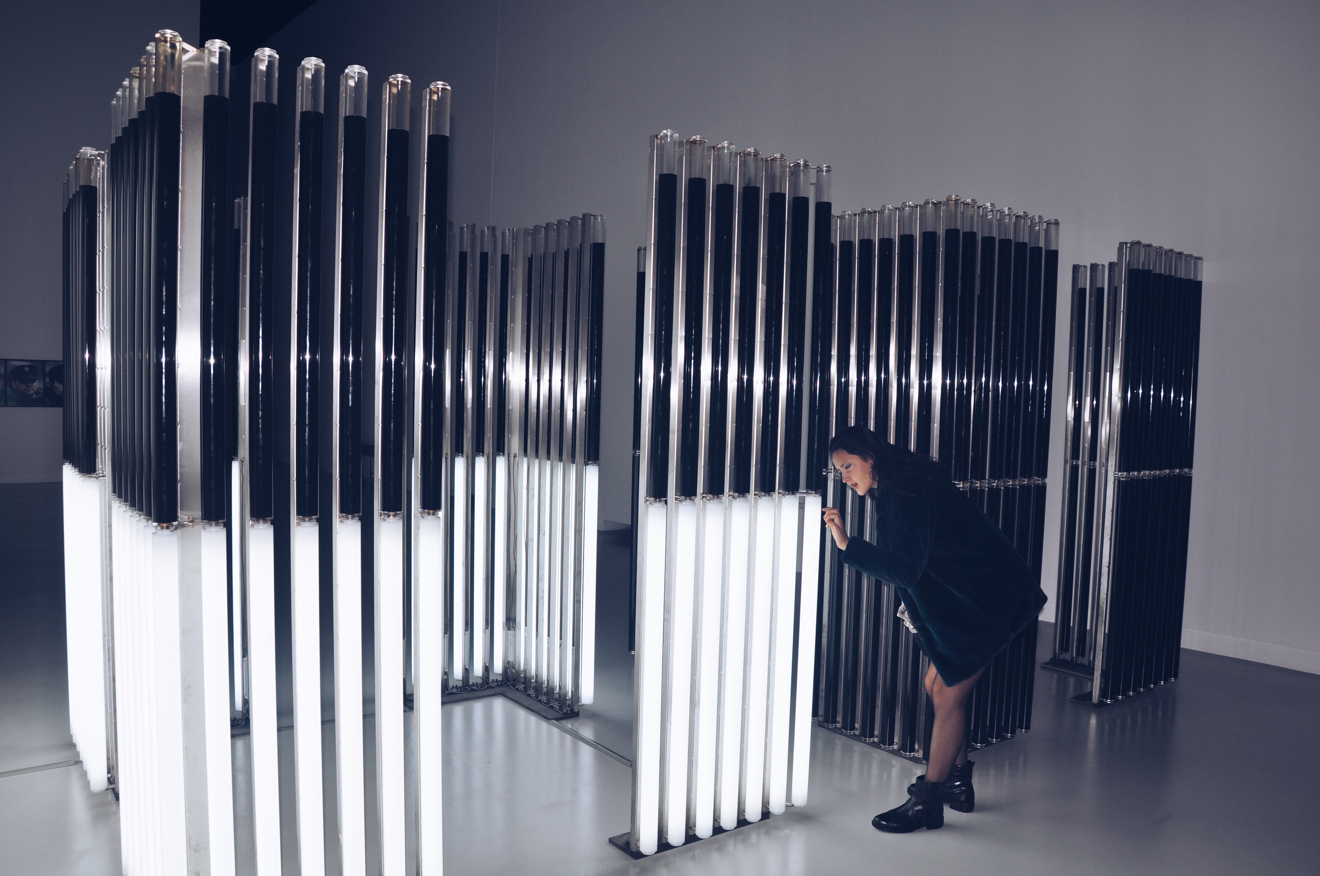 À nouveau, la première salle à l’entrée, sur la droite, était une succession de tubes bicolores disposés en carrés. D’après le fascicule, la couleur noire est celle du pétrole brut irakien et le blanc du gaz d’argon actif. Assemblés, cette opposition représente l’utopie et la dystopie de notre monde. En fait, chaque production artistique détient un sens improbable que l’on ignore sans la brochure et dénonce les actions insensées de nos gouvernements.