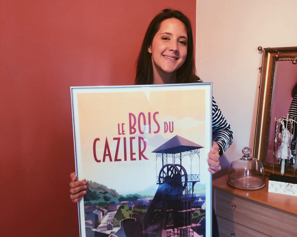 Concernant la ville de Charleroi, L’affiche Belge met en avant 4 lieux incontournables du Pays Noir. Le Bois du Cazier est une affiche dans les tons orangés que j’ai choisie pour embellir ma nouvelle chambre. J’ai d’abord eu un gros coup de foudre pour la représentation de la Tour de la police mais je n’avais pas l’ intérieur adéquat. Lors de notre conversation, ils m’expliquent que c’est d’ailleurs leur première création ! Un joli hasard je trouve… La gare est le troisième lieu choisi par le duo pour représenter Charleroi. J’aime moins ce design car les couleurs sont fades à mon goût. Enfin, la dernière en date est le coucher de soleil sur les terrils. Elle rivalise complètement avec la Tour de la police.