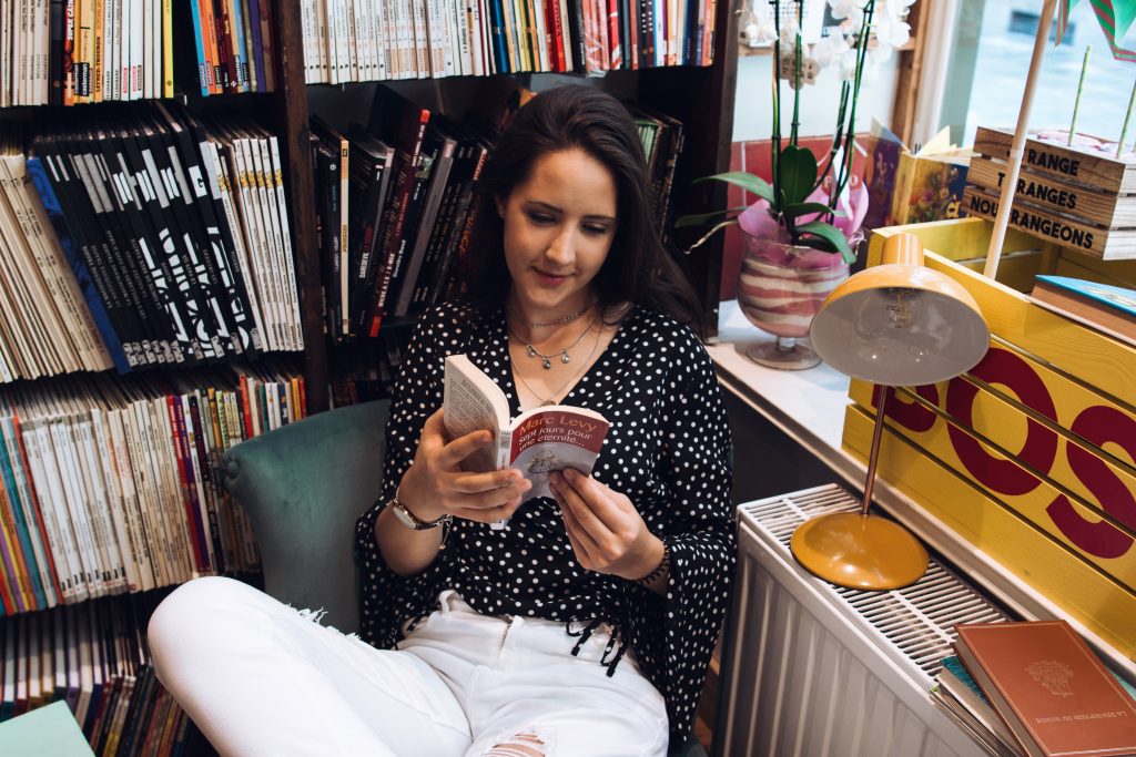 Dès son plus jeune âge, la maitresse des lieux a baigné dans la culture du livre. En effet, ses parents étaient propriétaires de la bouquinerie la Fafouille. C’est d’ailleurs grâce à eux qu’elle a pu trouver l’espace pour son projet ainsi que les stocks infinis de livres. Réelle passionnée, elle nous transmet son goût pour la lecture et nous accueille comme si nous étions ses amis de longue date. C’est surement la clé de sa réussite !