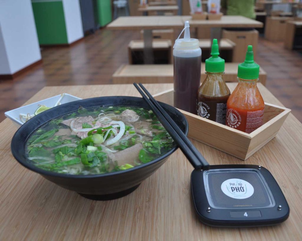 Ce qui me frappe directement est l’ambiance chaleureuse du restaurant. Une fois que vous passez les portes de cette maison bourgeoise, vous avez un puit de lumière et une décoration qui invite à la méditation. Ensuite vient la question fatidique : Qu’est-ce qu’on mange ? Vous pourrez choisir parmi les plats traditionnels de la cuisine vietnamienne. Si j’ai un conseil à vous donner c’est de vous laisser tenter par le pho, leur spécialité (d’où le nom de l’établissement). Si la gastronomie vietnamienne est mise à l’honneur, le concept de cantine est à ne pas oublier. Au pot-au-pho, la commande se prend à l’entrée et débarrasser son plateau est vivement conseillé. Un resto décontracté se concentrant sur la qualité des plats et non sur le paraître.
